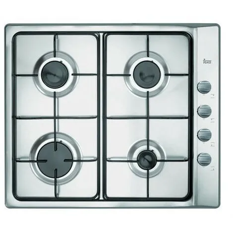 Cuisinière à gaz E/60. 3 4G AL de Teka. 4 feux. Commandes latérales métalliques. Brûleurs à gaz : un brûleur auxiliaire, deux brûleurs semi-rapides et un brûleur rapide. Sécurité des thermocouples.